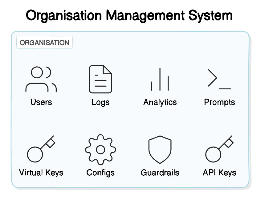 Portkey’s enterprise version allows you to create multipleorganizations, each serving as a secure and isolated environment for your teams or projects. This multi-tenant architecture ensures that your data, logs, analytics, prompts, integrations, providers, configs, guardrails, and API keys are strictly confined within each organization, preventing unauthorized access and maintaining data confidentiality.